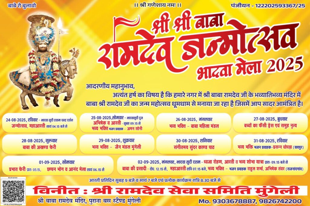 भादो मेला 2025: मुंगेली में श्री रामदेव बाबा जन्मोत्सव का भव्य आयोजन