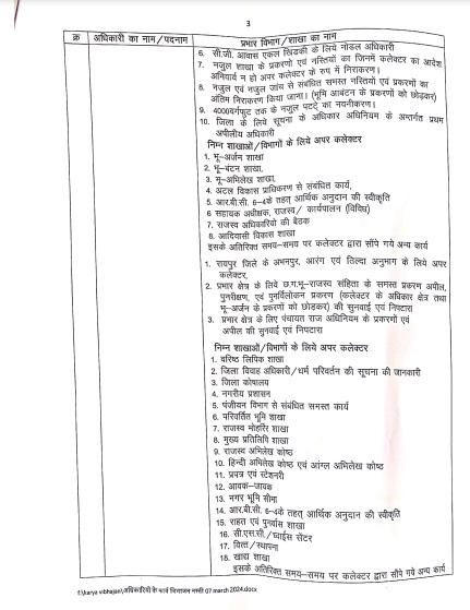 रायपुर। राज्य शासन के सामान्य प्रशासन विभाग ने रायपुर जिले में नवीन अधिकारियों की नवीन पदस्थापना के बाद नए सिरे से कार्यों का विभाजन किया है। इसके साथ ही अन्य जिले से रायपुर जिले में स्थानांतरण किए गए तहसीलदारों को जिले के विभिन्न तहसील कार्यालय में अस्थायी रूप से पदस्थ किया गया है।
