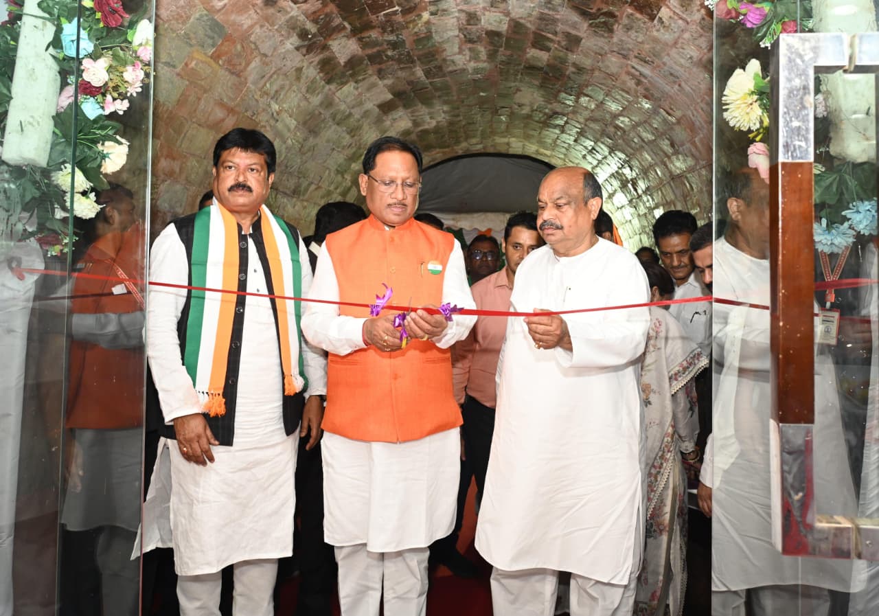 रायपुर : छत्तीसगढ़ राज्य स्थापना के रजत जयंती वर्ष 2025 के अंतर्गत आयोजित “आजादी की गढ़-गाथा” फोटो प्रदर्शनी का मुख्यमंत्री श्री विष्णु देव साय ने राजधानी रायपुर स्थित महंत घासीदास स्मारक संग्रहालय की आर्ट गैलरी में फीता काटकर शुभारंभ किया।