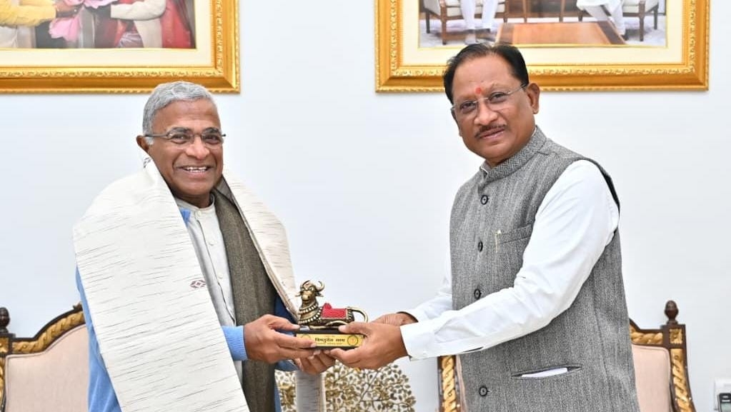 रायपुर /मुख्यमंत्री श्री विष्णु देव साय से राजधानी रायपुर स्थित मुख्यमंत्री निवास कार्यालय में राज्यसभा के उप सभापति श्री हरिवंश ने सौजन्य मुलाकात की। मुख्यमंत्री श्री साय ने शॉल और प्रतीक चिन्ह नंदी भेंट कर श्री हरिवंश का आत्मीय स्वागत एवं सम्मान किया।