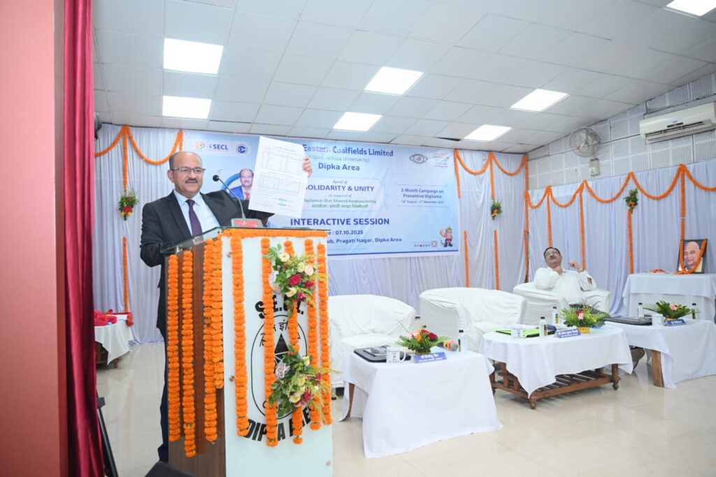 अधिकारियों एवं कर्मचारियों को संबोधित करते हुए श्री त्रिपाठी ने अपने प्रेरक नारे “जो जीता वही कोल इंडियन” को दोहराया और सभी को सतर्कता, उत्कृष्टता एवं ईमानदारी के साथ कार्य करने के लिए प्रेरित किया।
