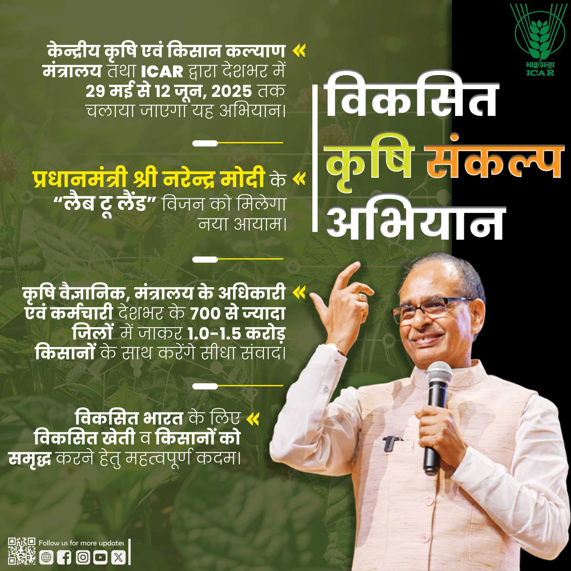 भारत सरकार के कृषि एवं किसान कल्याण मंत्रालय नई दिल्ली के निर्देशानुसार 29 मई से 12 जून तक बिलासपुर सहित राज्य के सभी विकासखण्डों में विकसित कृषि संकल्प अभियान का आयोजन किया जावेगा।