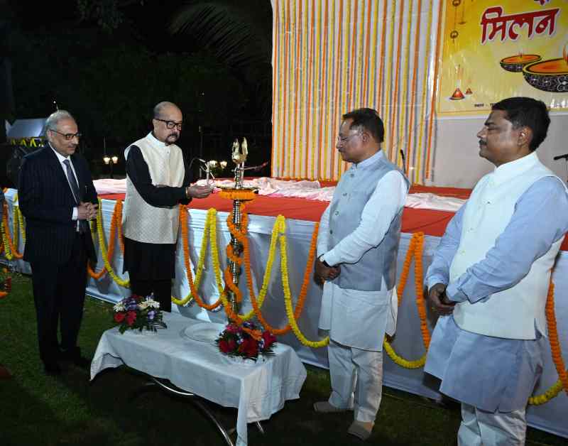 रायपुर/राजभवन में दीपावली पर्व के अवसर राज्यपाल श्री रमेन डेका के मुख्य आतिथ्य में दीपावली मिलन समारोह का आयोजन किया गया। श्री डेका ने दीप प्रज्वलित कर कार्यक्रम का शुभारंभ किया । उन्होंने सभी अतिथियों को दीपावली पर्व की हार्दिक शुभकामनाएं दी। साथ ही सभी के सुख, शांति एवं समृद्धि की कामना की। समारोह में मुख्यमंत्री श्री विष्णु देव साय विशेष रूप से उपस्थित थे। मुख्यमंत्री सहित आमंत्रित अतिथियों ने भी राज्यपाल को दीपावली की हार्दिक शुभकामनाएं दी। इस अवसर पर राज्य की प्रथम महिला श्रीमती रानी डेका काकोटी एवं राज्यपाल के परिजन उपस्थित थे।
