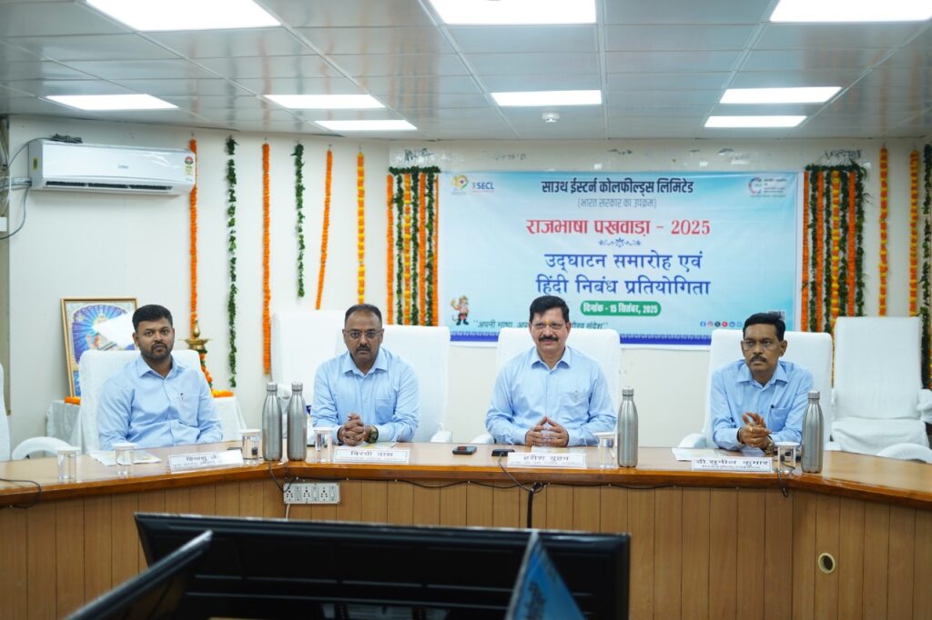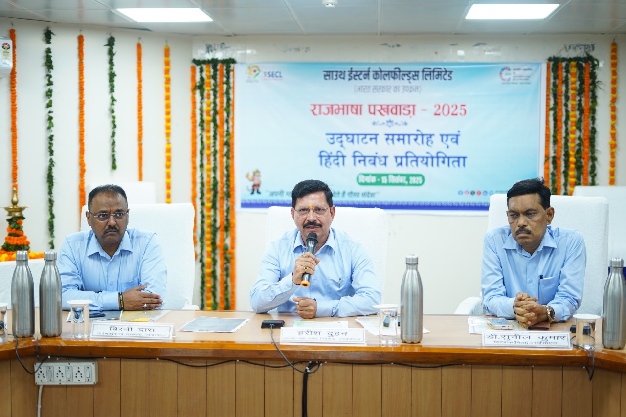 एसईसीएल मुख्यालय में दिनांक 15 सितम्बर 2025 को ’’राजभाषा पखवाड़ा उद्घाटन समारोह’’ अध्यक्ष सह प्रबंध निदेशक श्री हरीश दुहन की अध्यक्षता, निदेशक (मानव संसाधन) श्री बिरंची दास, निदेशक (वित्त) श्री डी. सुनील कुमार, मुख्य सतर्कता अधिकारी श्री हिमांशु जैन के विशिष्ट आतिथ्य, विभिन्न विभागाध्यक्षों, अधिकारियों-कर्मचारियों, श्रमसंघ प्रतिनिधियों की उपस्थिति में सम्पन्न हुआ। राजभाषा पखवाड़ा का यह आयोजन एसईसीएल के समस्त क्षेत्रों में किया जा रहा है।