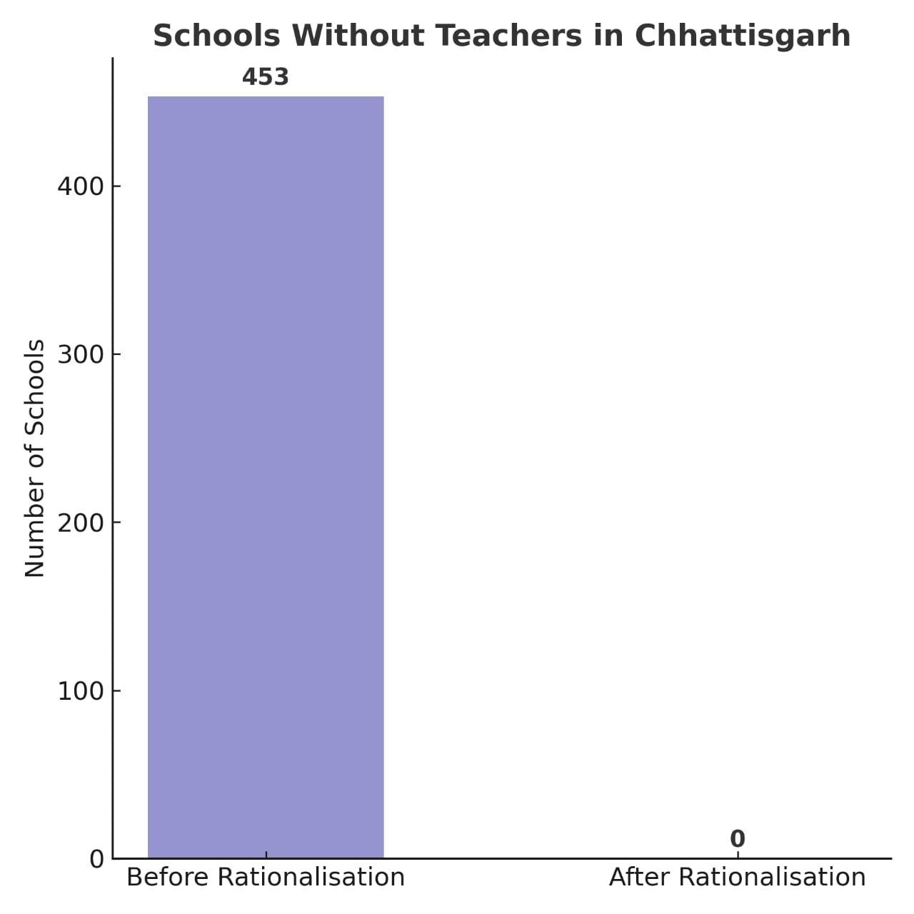 प्रदेश की शिक्षा व्यवस्था को सुदृढ़ और संतुलित बनाने की दिशा में युक्तियुक्तकरण प्रक्रिया से बेहतर परिणाम मिले हैं। प्रदेश में युक्तियुक्तकरण के पूर्व कुल 453 विद्यालय शिक्षक विहीन थे। युक्तियुक्तकरण के पश्चात एक भी विद्यालय शिक्षक विहीन नहीं है।