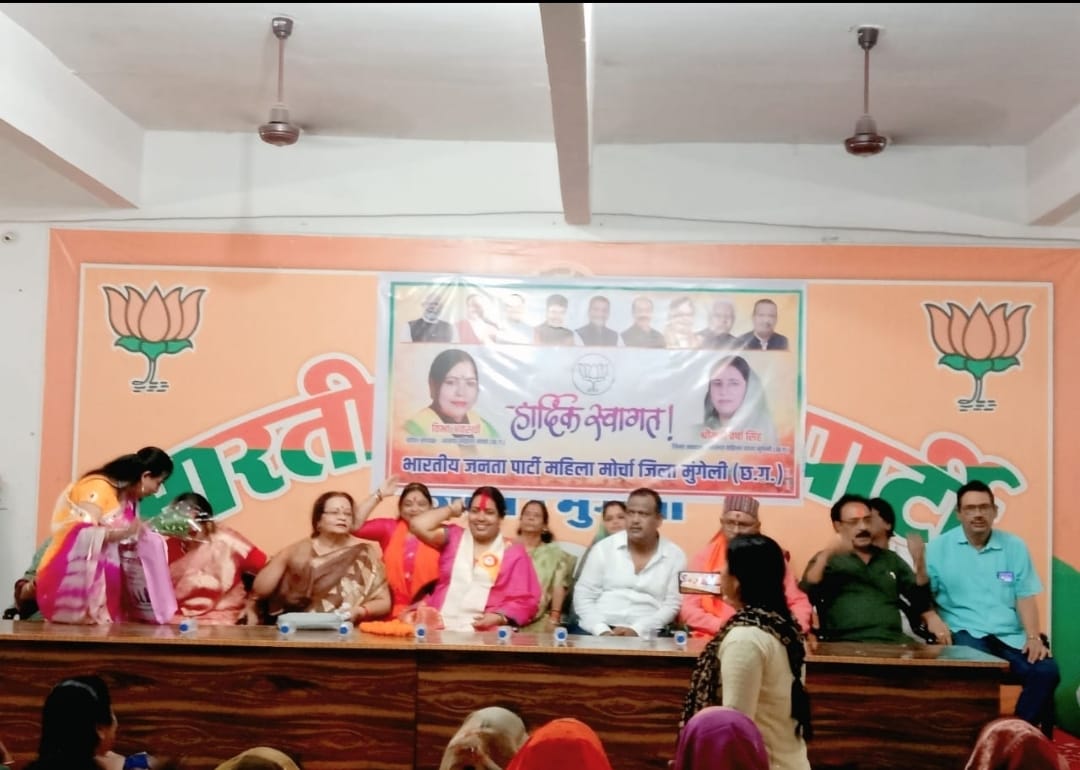 मुंगेली : भारतीय जनता पार्टी महिला मोर्चा की प्रदेश अध्यक्ष श्रीमती विभा अवस्थी का प्रथम नगर आगमन हुआ। इस अवसर पर महिला मोर्चा की जिला अध्यक्ष श्रीमती वर्षा सिंह के नेतृत्व में सैकड़ों महिला पदाधिकारी और कार्यकर्ताओं ने उनका भव्य स्वागत किया।