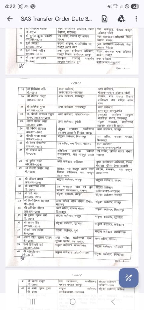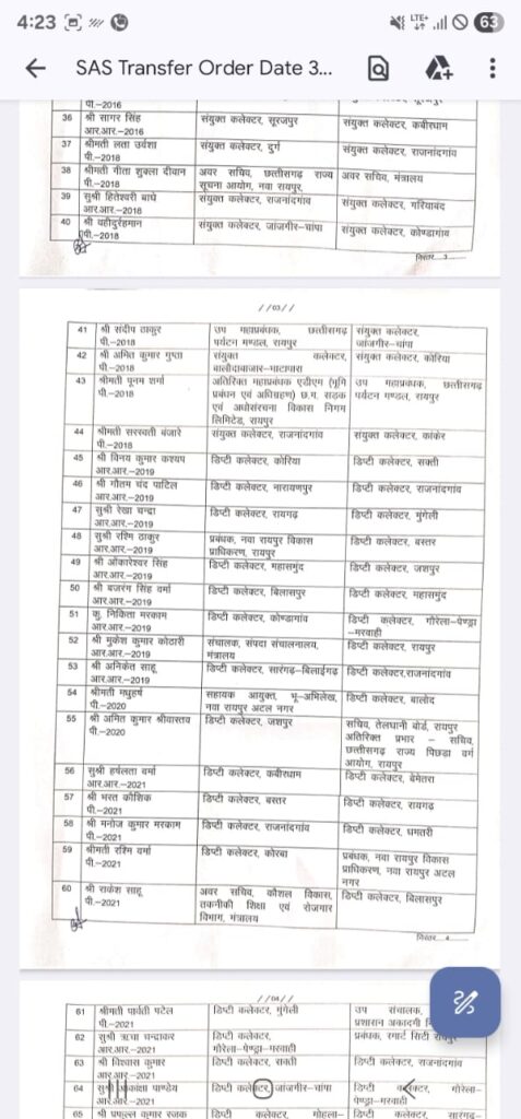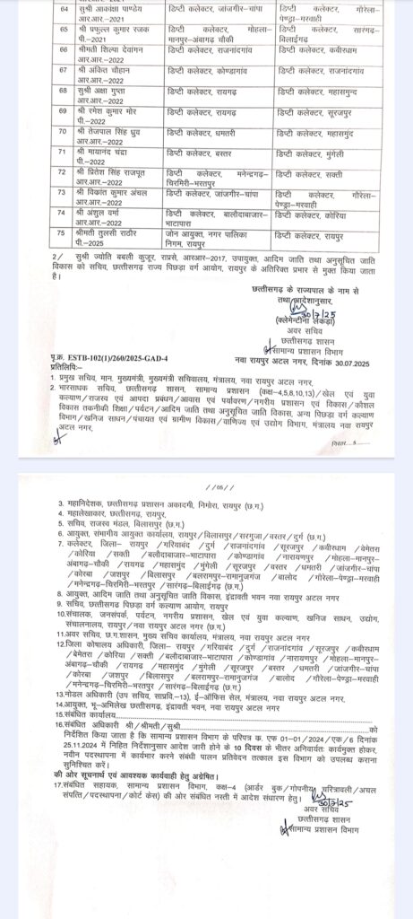 आदेश के तहत कई जिलों में अपर कलेक्टर, संयुक्त कलेक्टर, डिप्टी कलेक्टर और मुख्य कार्यपालन अधिकारियों को इधर-उधर किया गया है।