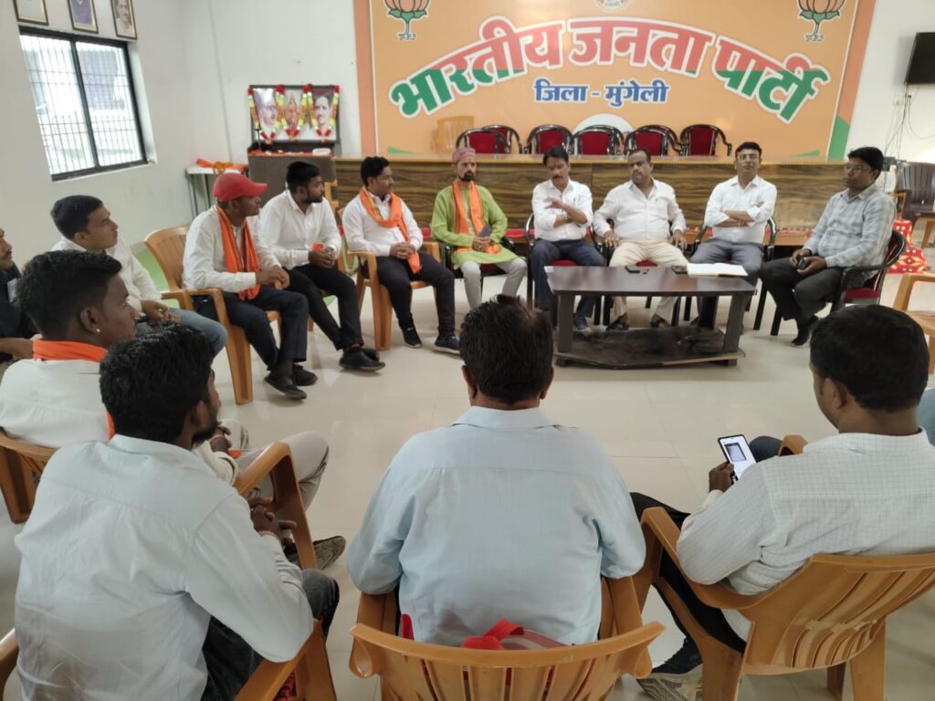 मुंगेली : भारतीय जनता पार्टी प्रदेश के निर्देशानुसार भारतीय जनता पार्टी जिला कार्यालय अटल परिसर में मंडल मीडिया प्रभारियों की बैठक संपन्न हुआ, इस बैठक में कार्य योजना की रूपरेखा तैयार की गई साथ ही प्रधानमंत्री मोदी जी के विकास कार्य, नेक्स्टजेन 2.0 जीएसटी सुधार और छत्तीसगढ़ प्रदेश की विष्णु देव सरकार के सुशासन के कार्यों को जनता तक ले जाने की जिम्मेदारी सभी मंडल प्रभारियों को दिया गया.