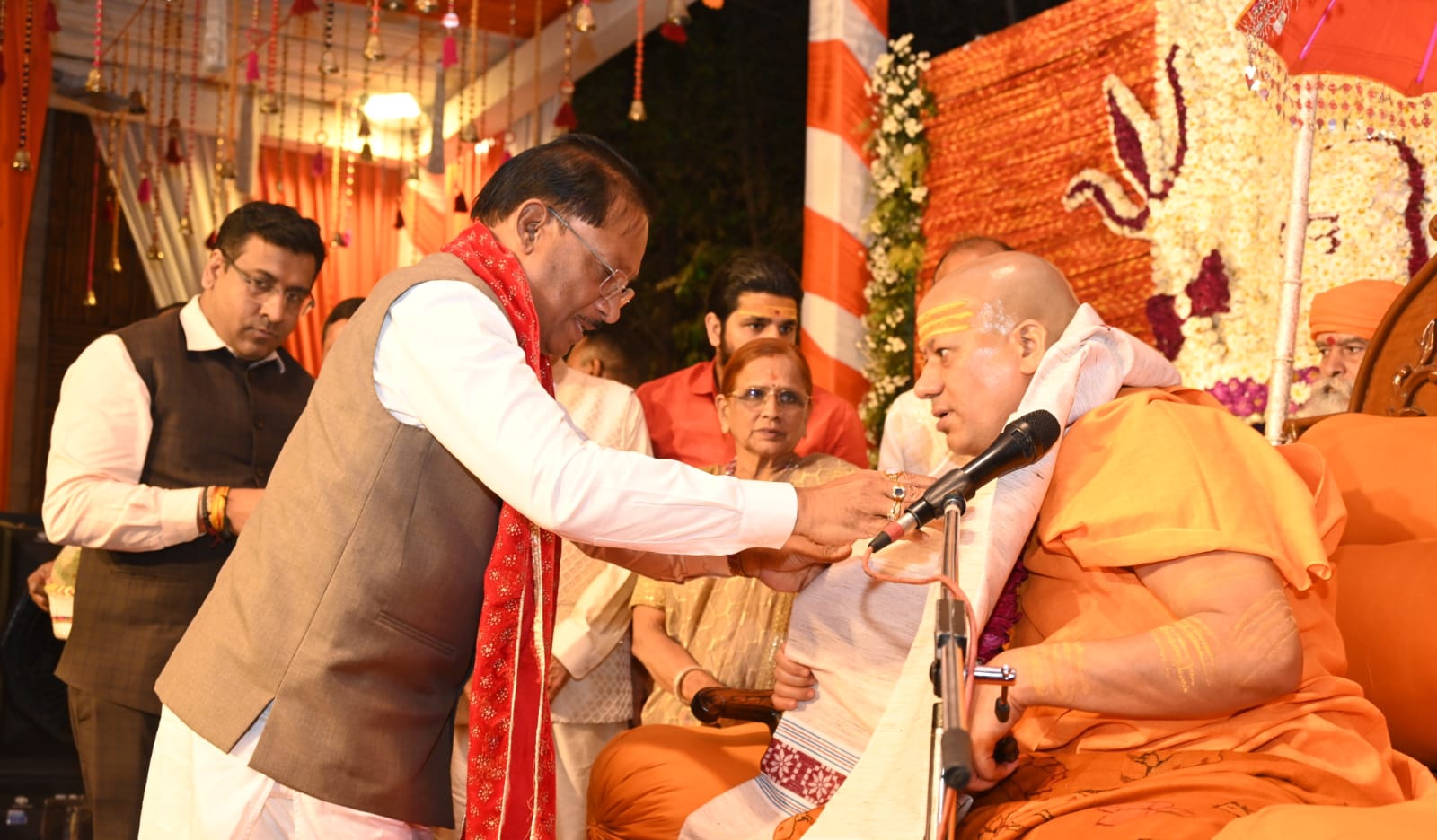 मुख्यमंत्री श्री साय ने निरंजन पीठाधीश्वर श्री श्री 1008 आचार्य महामंडलेश्वर डॉ. स्वामी कैलाशनंद गिरि जी महाराज के साथ विभिन्न आध्यात्मिक विषयों पर चर्चा की और उनका आशीर्वाद प्राप्त किया।