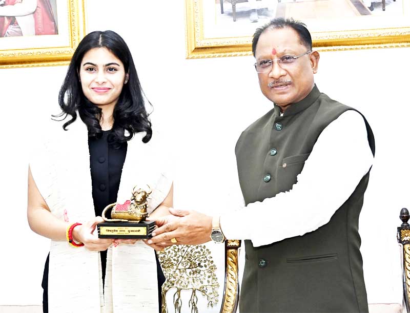 रायपुर/ मुख्यमंत्री श्री विष्णुदेव साय से आज शाम यहां उनके निवास में पेरिस ओलम्पिक 2024 में कांस्य पदक विजेता निशानेबाज सुश्री मनु भाकर ने मुलाकात की। मुख्यमंत्री श्री साय ने सुश्री मनु भाकर का छत्तीसगढ़ में स्वागत करते हुए कहा कि आपकी उपलब्धि से पूरा देश गौरवान्वित हुआ है। सुश्री मनु भाकर राजधानी रायपुर में आयोजित 27वीं अखिल भारतीय वन खेलकूद प्रतियोगिता के समापन समारोह में हिस्सा लेने छत्तीसगढ़ आयी हैं।