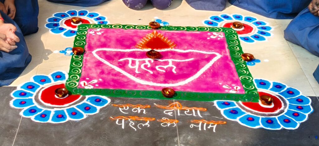 कार्यक्रम के दौरान पहल टीम की पुलिस बालमित्र रोशना डेविड के नेतृत्व में विद्यालय के विद्यार्थियों ने सुंदर रंगोली बनाई, दियों को सजाया, और चित्रकला के माध्यम से “एक दिया पहल के नाम” का संदेश घर-घर पहुँचाया।