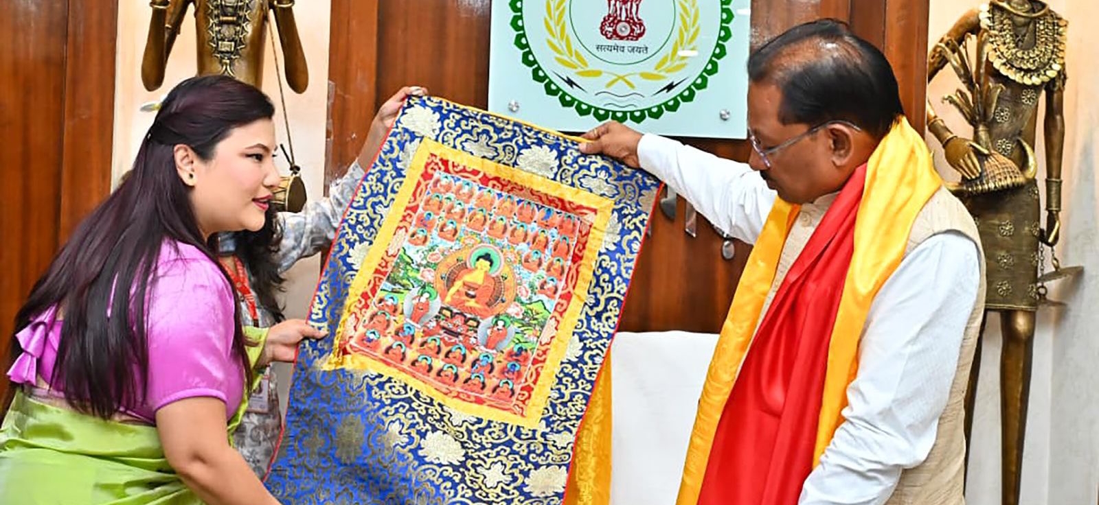 पत्रकारों के दल ने मुख्यमंत्री को सिक्किम की धार्मिक एवं सांस्कृतिक पहचान का प्रतीक ‘थांका’ पेंटिंग भेंट की। मुख्यमंत्री ने इस उपहार के लिए आभार व्यक्त करते हुए इसे स्नेह और सांस्कृतिक आदान-प्रदान का प्रतीक बताया।