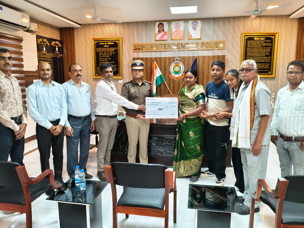 मुंगेली। पुलिस सैलरी पैकेज, शहीद आरक्षक की पत्नी को 1 करोड़ रुपये मुंगेली के एसएसपी भोजराम पटेल ने पथरिया में पदस्थ शहीद आरक्षक राकेश डहरिया का 24.06.2025 को ड्यूटी के दौरान सड़क दुर्घटना में आकस्मिक निधन हो जाने पर दिवगंत आरक्षक राकेश डहरिया के परिवार को पुलिस सैलरी पैकेज के तहत आर्थिक सहायता 01 करोड़ रूपये का चेक दिया गया। वरिष्ठ पुलिस अधीक्षक भोजराम पटेल के द्वारा सड़क हादसे मे आरक्षक राकेश डहरिया की आकस्मिक निधन पश्चात् धर्मपत्नि नागेश्वरी डहरिया को सांत्वना देते हुये पुलिस सैलरी पैकेज के तहत भारतीय स्टेट बैेंक शाखा से 01 करोड़ रूपये का चेक देकर आर्थिक रूप से सहायता प्रदाय किया गया।