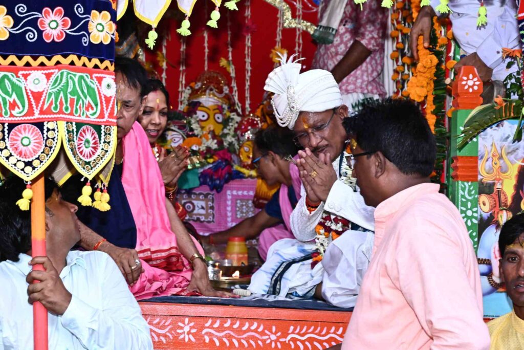 जशपुरनगर 27 जून 2025/ जशपुर ज़िले के ऐतिहासिक एवं प्राचीन जगन्नाथ मंदिर दोकड़ा में इस वर्ष भी रथयात्रा महोत्सव का आयोजन परंपरा, श्रद्धा और भव्यता के साथ निकाली गई। रथ यात्रा से पहले मुख्यमंत्री श्री विष्णुदेव साय एवं उनकी धर्मपत्नी श्रीमती कौशल्या साय ने जगन्नाथ मंदिर में पूरे विधि-विधान से भगवान श्री जगन्नाथ, भाई बलभद्र एवं बहन सुभद्रा की पूजा-अर्चना कर प्रदेशवासियों के सुख, समृद्धि और कल्याण की मंगलकामना की। इस वर्ष की रथ यात्रा में मुख्यमंत्री श्री विष्णुदेव साय स्वयं गजपति महाराजा की परंपरागत भूमिका में हैं।