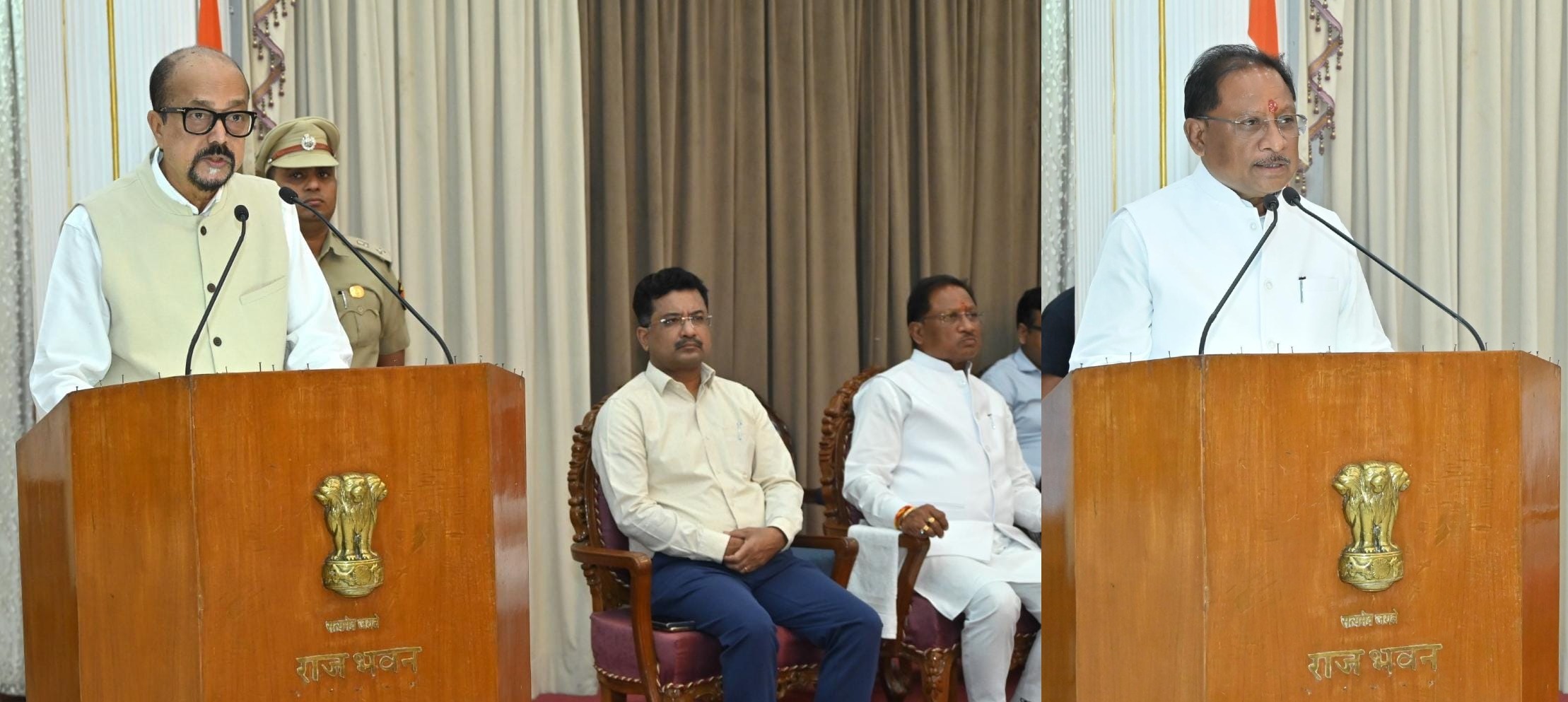 वर्तमान में चल रहे तनावपूर्ण परिस्थिति में सभी धर्मो, समाजों एवं सम्प्रदायों के बीच शांति, सौहार्द एवं एकजुटता के उद्देश्य से आज राजभवन के दरबार हॉल में राज्यपाल श्री रमेन डेका की अध्यक्षता में सर्वधर्म सभा आयोजित की गई। सभा में मुख्यमंत्री श्री विष्णु देव साय भी उपस्थित थे।