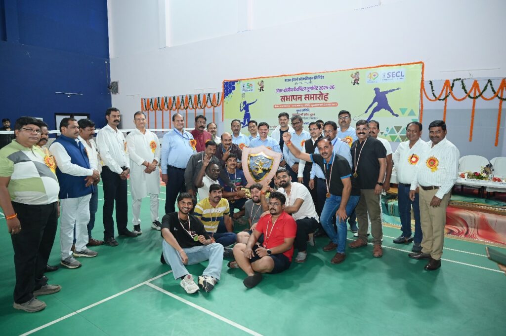 एसईसीएल मुख्यालय स्थित न्यू वसंत विहार बैडमिंटन कोर्ट में दिनांक 22 अगस्त 2025 को तीन दिवसीय अंतर-क्षेत्रीय बैडमिंटन टूर्नामेंट 2025-26 का सफलतापूर्वक समापन हुआ। इस अवसर पर मुख्य अतिथि श्री हरीश दुहन, अध्यक्ष-सह-प्रबंध निदेशक, एसईसीएल ने विजेता और उपविजेता खिलाड़ियों को पुरस्कृत किया।