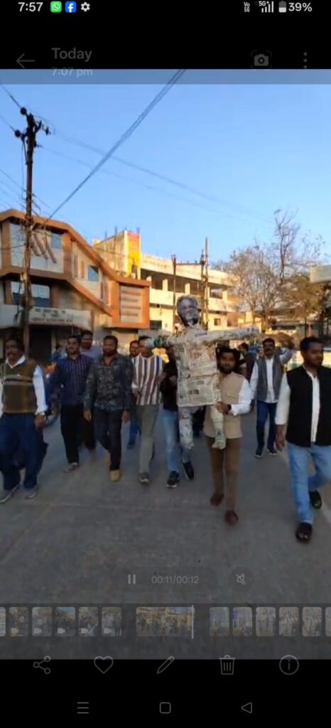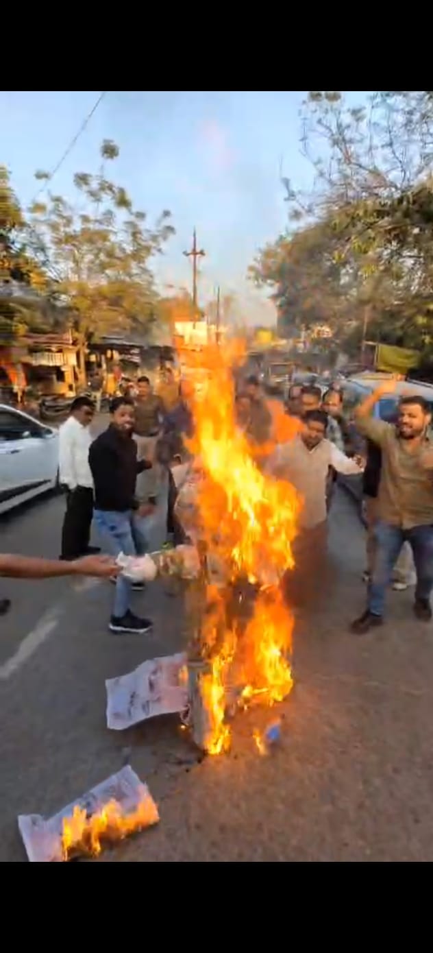 मुंगेली// छत्तीसगढ़ के पूर्व मुख्यमंत्री भूपेश बघेल द्वारा बागेश्वर बाबा,संतों, सनातन एवं देवी देवताओं के ऊपर अपमानजनक व्यक्तव्य देने के विरोध में भारतीय जनता युवा मोर्चा मुंगेली द्वारा भूपेश बघेल के विरुद्ध नारेबाजी करते हुए बघेल का पुतला दहन किया गया.