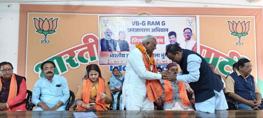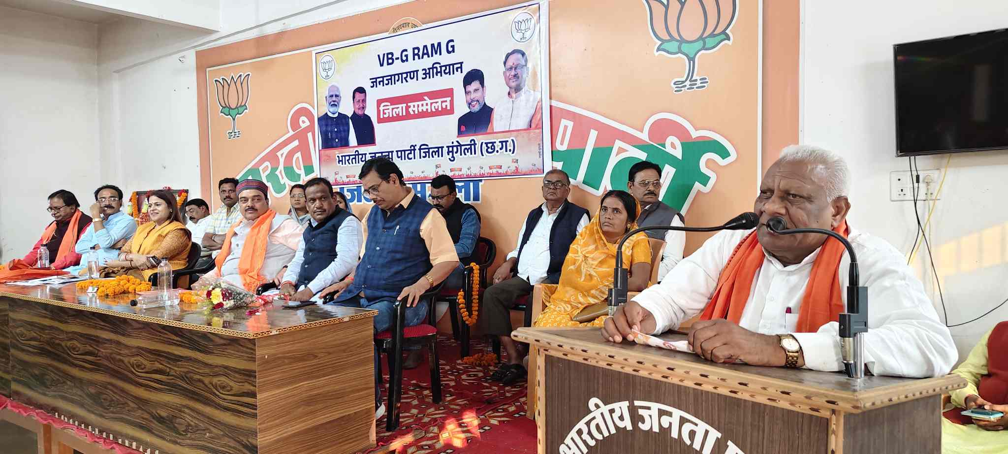 मुंगेली //जिला भाजपा कार्यालय मुंगेली “अटल परिसर” में विकसित भारत गारंटी फॉर रोजगार एंड अजीविका मिशन ग्रामीण (वीबी जीरामजी )पर मुंगेली में जिला स्तरीय सम्मेलन संपन्न हुआ.इस सम्मेलन में मुख्यवक्ता के रूप में पुन्नूलाल मोहले विधायक मुंगेली,हर्षिता पांडेय प्रदेश मंत्री भाजपा,जिला प्रभारी ज्योतिनंद दुबे रहे.