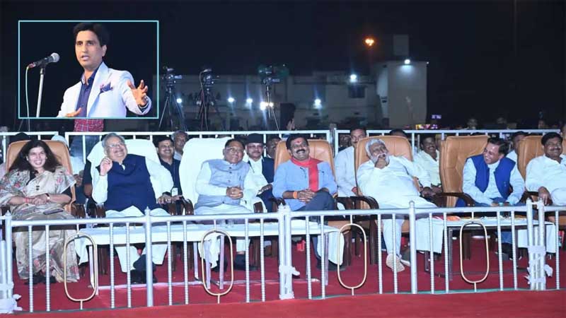 राजनांदगांव। छत्तीसगढ़ प्रदेश के पूर्व मुख्यमंत्री, विधानसभा अध्यक्ष और राजनांदगांव के विधायक डॉ. रमन सिंह के जन्मदिन पर संस्कारधानी कवि सम्मेलन का आयोजन किया गया। इसमें प्रख्यात कवि डॉ. कुमार विश्वास, सुरेंद्र दुबे सहित देश के नामचीन कवियों ने काव्य पाठ किया। युवा वेलफेयर फाउंडेशन के अध्यक्ष भावेश बैद द्वारा आयोजित कार्यक्रम में मुख्यमंत्री विष्णुदेव साय, विधानसभा अध्यक्ष डॉ. रमन सिंह, आईएनएच एवं हरिभूमि के प्रधान संपादक डॉ. हिमांशु द्विवेदी विशेष रूप में उपस्थित रहे।