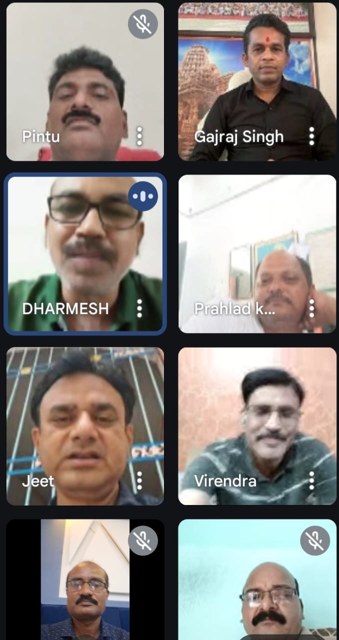 प्रान्ताध्यक्ष वीरेंद्र दुबे के नेतृत्व मे वर्चुअल बैठक को प्रांतीय महासचिव धर्मेश शर्मा तथा कार्यकारी प्रांताध्यक्ष चंद्रशेखर तिवारी ने सम्बोधित किया |बैठक का संचालन मिडिया प्रभारी जितेन्द्र शर्मा तथा आभार प्रदर्शन गजराज सिंह ने किया ।