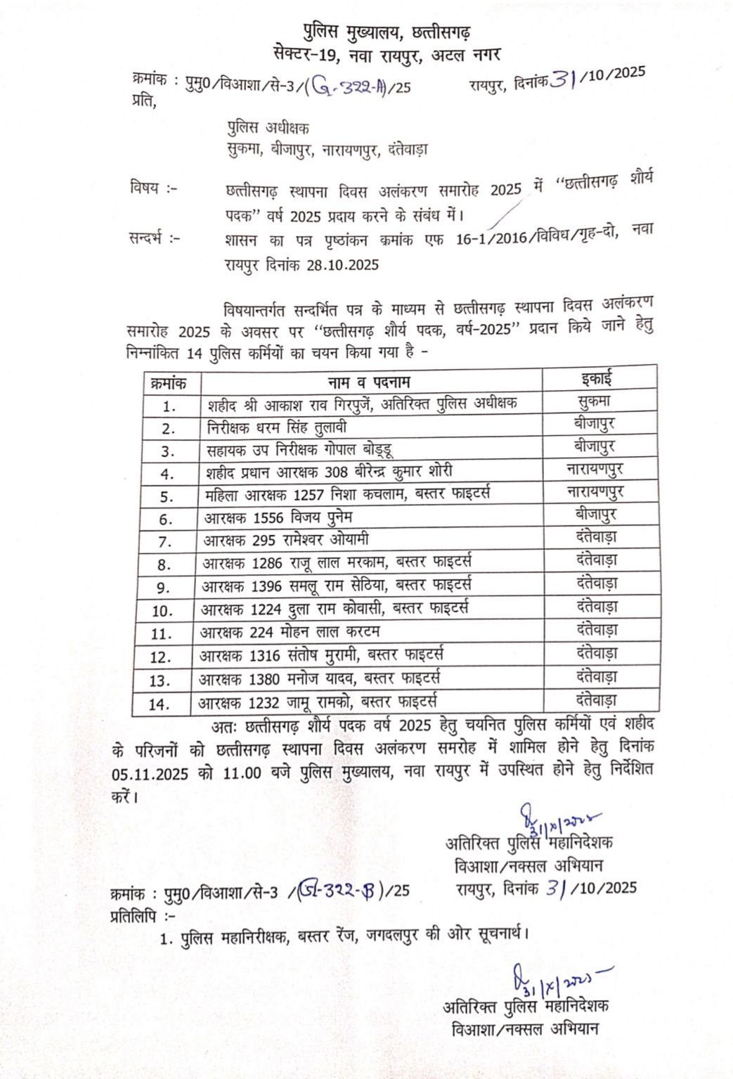 इन वीर पुलिसकर्मियों की बहादुरी ने न केवल प्रदेश का गौरव बढ़ाया है, बल्कि उनके उदाहरण से सुरक्षा बलों का मनोबल भी ऊँचा हुआ है। राज्य स्थापना दिवस पर होने वाला यह सम्मान समारोह, प्रदेश की उन वीर संतानों को श्रद्धांजलि है जिन्होंने शांति और विकास की राह में अपना सर्वस्व न्योछावर कर दिया।