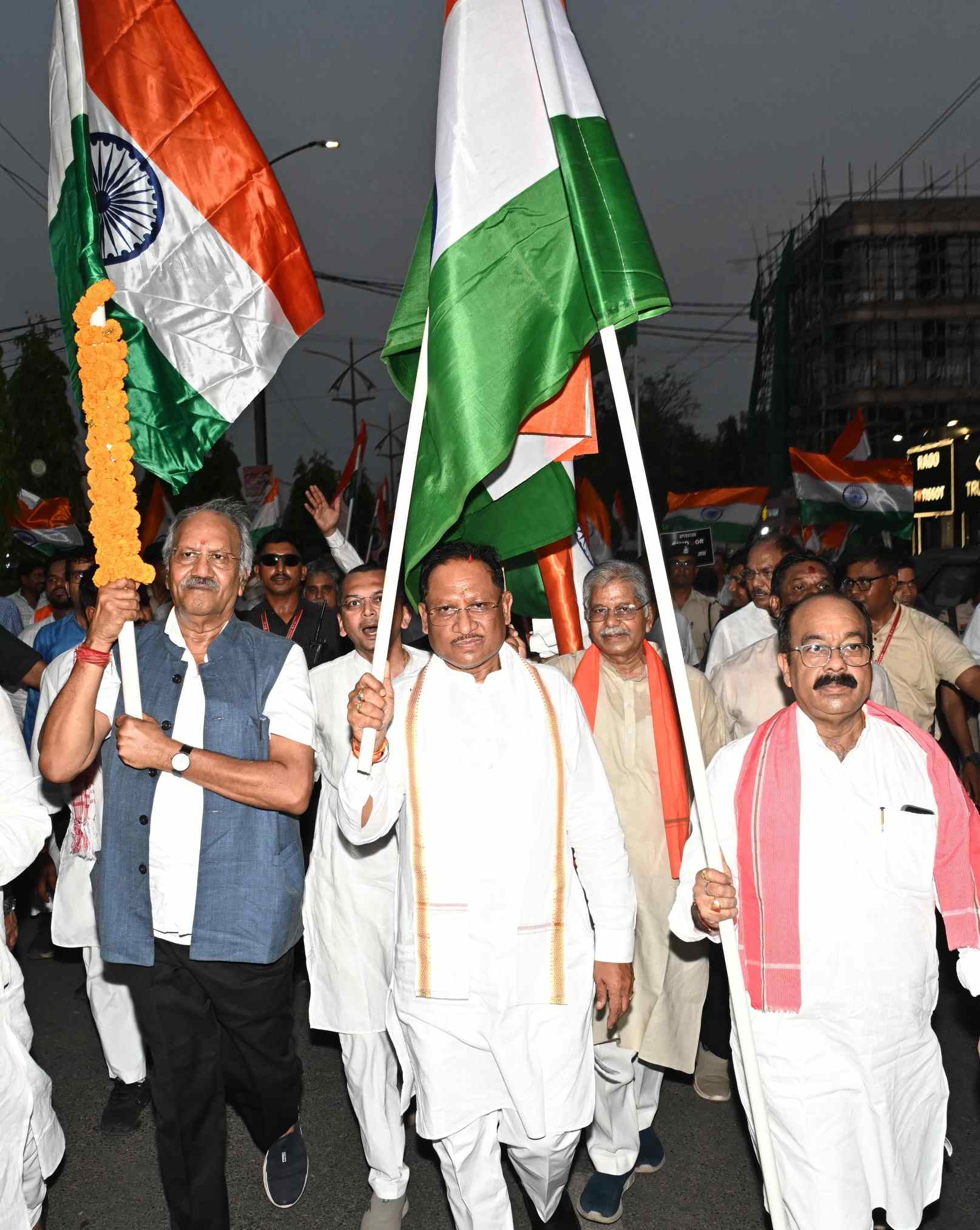 रायपुर/ मुख्यमंत्री श्री विष्णु देव साय आज राजधानी रायपुर में आयोजित तिरंगा यात्रा में शामिल हुए। उन्होंने कहा कि राष्ट्र की सुरक्षा की जब भी बात आएगी हम सभी एक हैं। देश के, अपने प्रधानमंत्री श्री नरेंद्र मोदी और अपनी सेना के साथ हैं। उन्होंने कहा कि तिरंगा यात्रा में सभी वर्गों के लोग, सेवानिवृत्त सैनिक, समाज सेवी संगठन, आम नागरिक, महिला एवं पुरुष, बच्चों ने बड़ी संख्या में शामिल होकर एकजुटता, देशभक्ति, राष्ट्रीय गौरव का संदेश दिया है।
